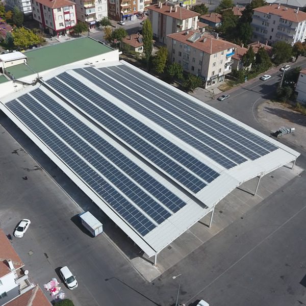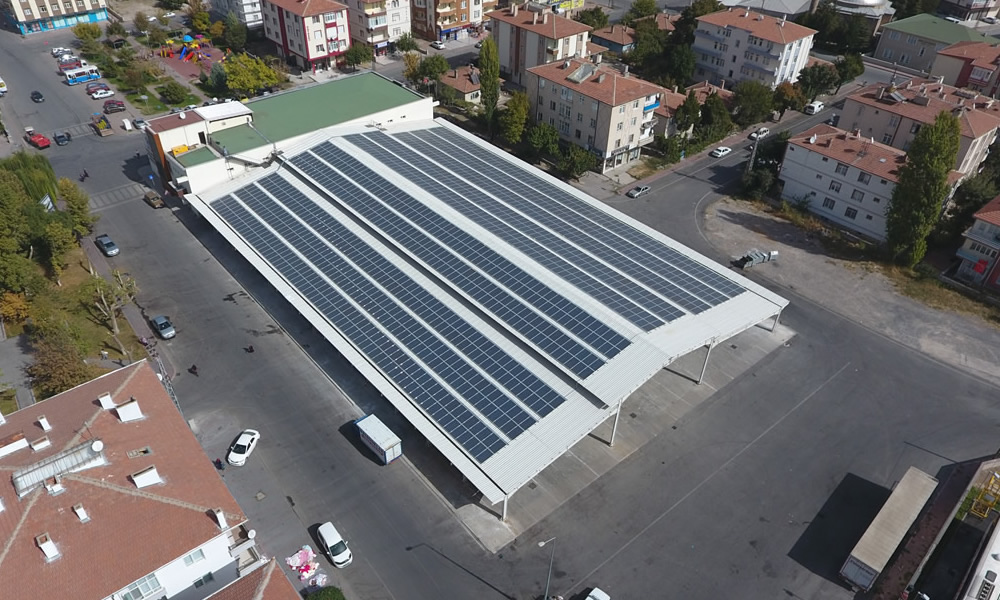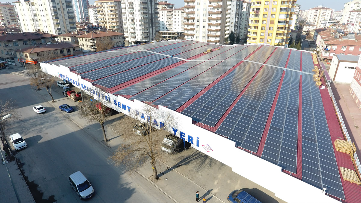 სახურავზე მზის ელექტროსადგური მელიქგაზი მუნიციპალიტეტი ილდირიმ ბეიაზიტის ბაზრის სახურავის მზის ელექტროსადგური